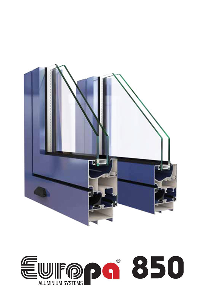Η σειρά EUROPA 850 είναι σύστημα ανοιγόμενων κουφωμάτων με απλές ίσιες γραμμές σχεδίασης. Το σύστημα διαθέτει δύο μεγέθη φύλλων (μικρό – μεγάλο), μπινί και 23mm κάσα, τα οποία είναι σχεδιασμένα ώστε να δέχονται μηχανισμούς CAMERA EUROPEA. Αντίστοιχα διατίθενται και φύλλα σε δύο μεγέθη (μικρό – μεγάλο), μπινί και 29mm κάσα, σχεδιασμένα ώστε να δέχονται ΜΗΧΑΝΙΣΜΟ ΠΕΡΙΜΕΤΡΙΚΟΥ ΚΛΕΙΔΩΜΑΤΟΣ.