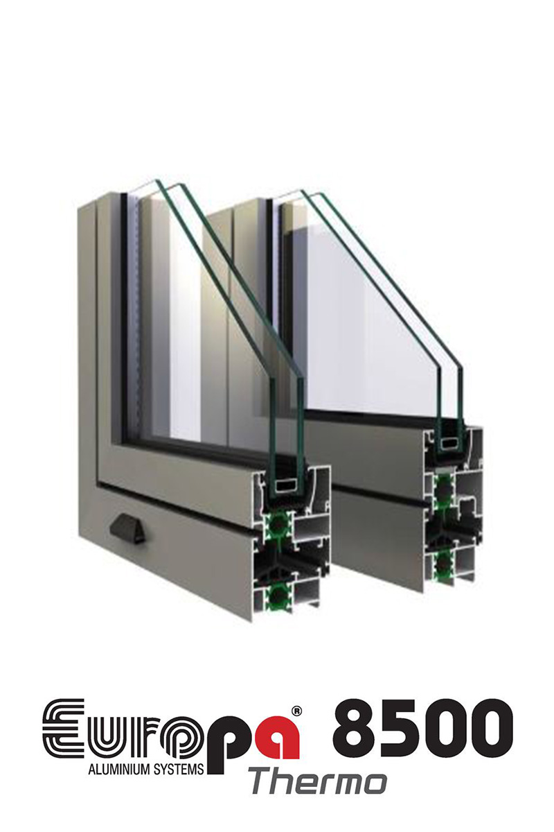 Η σειρά EUROPA 8500 Thermo, είναι οικονομικό, θερμομονωτικό ανοιγόμενο σύστημα με απλές ίσιες γραμμές σχεδίασης. Διαθέτει απλό ή περιμετρικό μηχανισμό κλειδώματος.